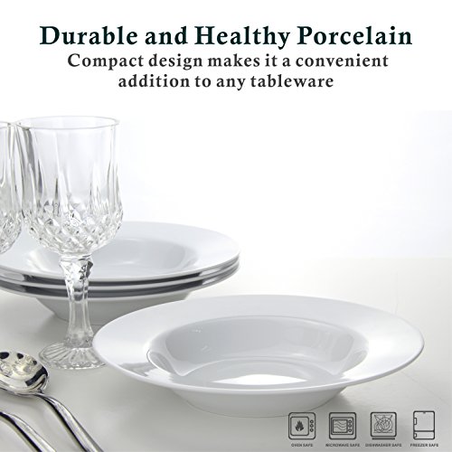 YHY 8-1/4-inch Porcelain Soup Bowl Set/Rim Pasta Bowls, White, Set of 4