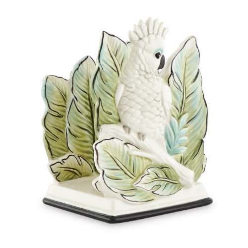 -. Binding : Kitchen -. Brand : Fitz and Floyd -. Color : White/Blue/Green -. EAN : 0742414367729 -. Feature : Add a touch of the rainforest to your home décor when you use the Fitz and Floyd Cockatoo Napkin Holder / This exquisite earthenware napkin holder features a pair of gentle white cockatoos nestled in a cluster of rainforest fronds / Makes a perfect gift for any occasion / From drafting board to kiln, every Fitz and Floyd product is designed and hand crafted by master artisans / Fitz and Floyd has provided exquisitely crafted Presidential dinnerware for the White House, and a tea set for Her Majesty Queen Elizabeth II -. Label : Fitz and Floyd -. Manufacturer : Fitz and Floyd -. Model : 29-511 -. MPN : 29-511 -. NumberOfItems : 1 -. PackageQuantity : 1 -. PartNumber : 29-511 -. ProductGroup : Kitchen -. ProductTypeName : KITCHEN -. Publisher : Fitz and Floyd -. Studio : Fitz and Floyd -. Title : Cockatoo Collection, Napkin Holder -. UPC : 735533441432