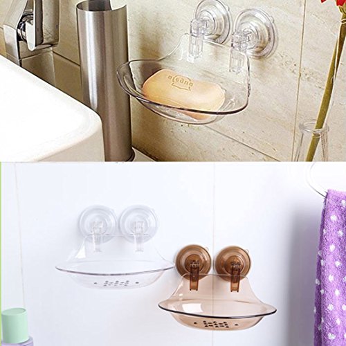 uxcell Plastic Bathroom Shower Suction Cup Soap Box Holder Dish Tray Clear