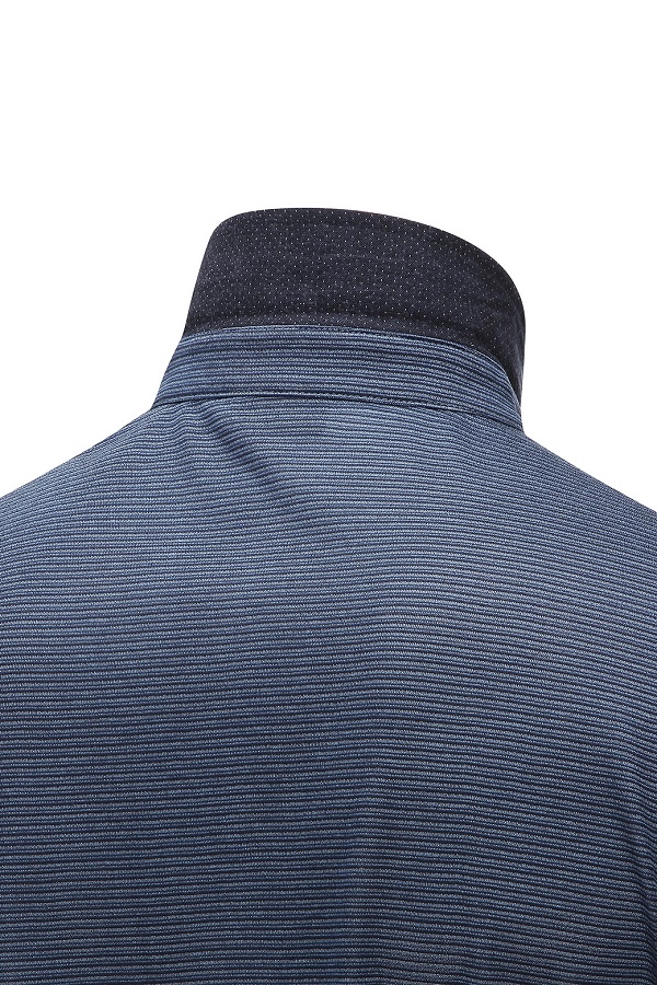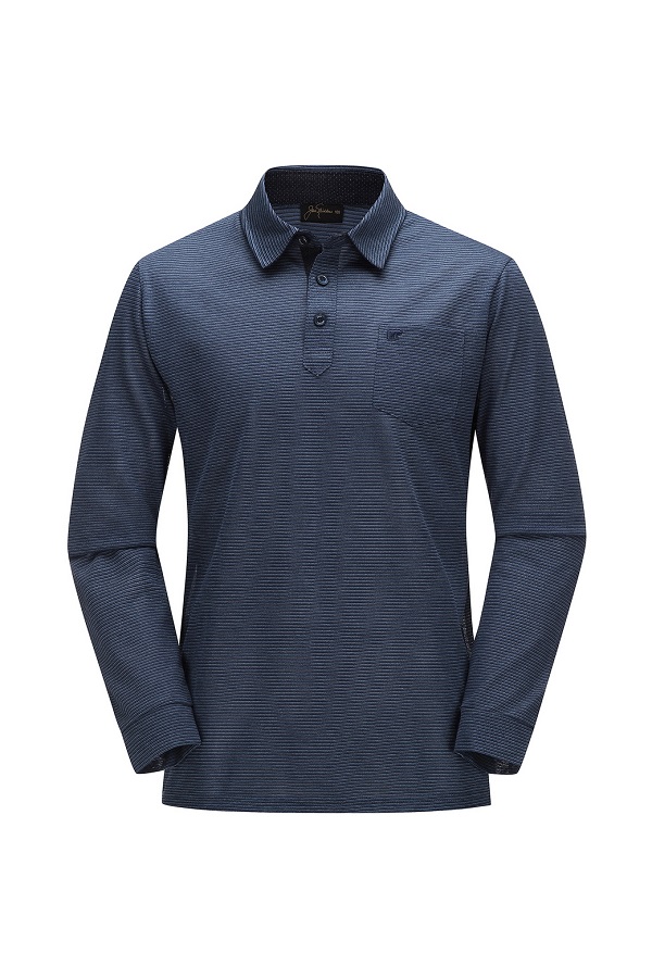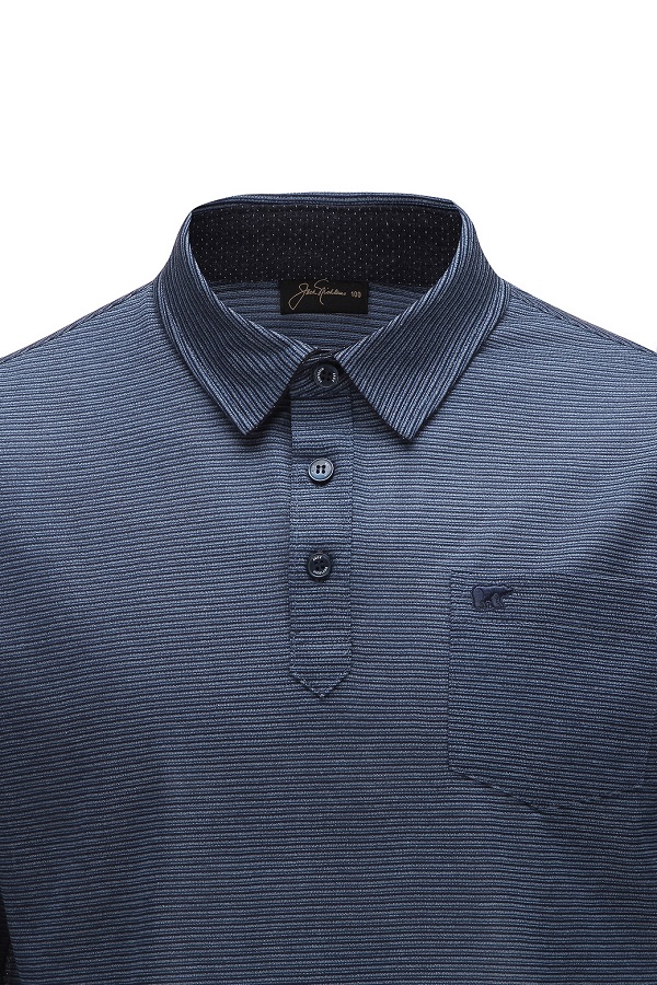 - 핀 스트라이프 패턴 디자인 남성 티셔츠.- 가볍고 신축성이 우수한 소재로 편안함.- 기본 카라에 이지한 FIT 라인으로 깔끔함.- 부분 도트 배색으로 포인트 멋을 더했음.- 가슴판 심볼 패치를 더한 포켓 디테일로 수납성과 브랜드 감각을 높였음.- 소매단 시보리 디테일로 실루엣을 잡아줌.- 라운딩 룩의 포인트 아이템으로 연출 가능.