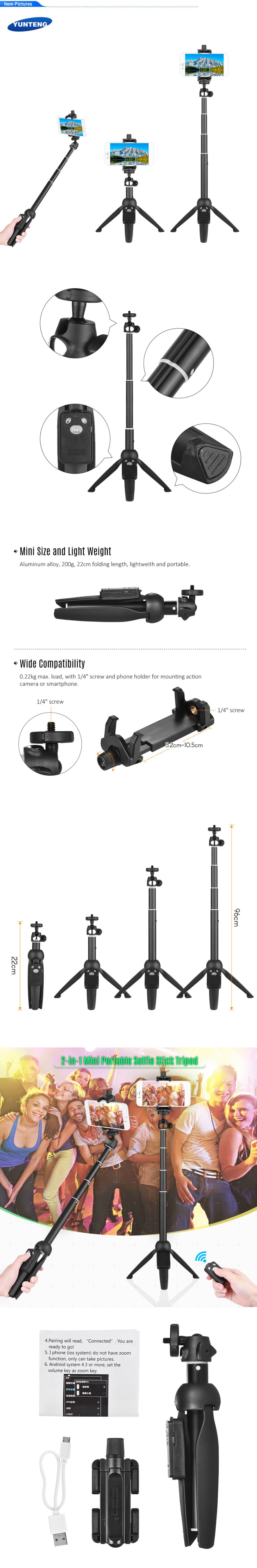 2-in-i selfie stick tripod with remote control, allows you to take selfprotraits and group photos freely.