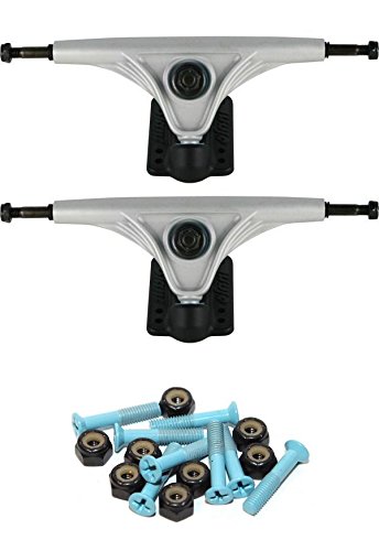 Studio : Slant Trucks Publisher : Slant Trucks Binding : Misc. Product Description These brand new Grey / Black Slant Trucks trucks have a 180mm hanger, and a 9.75" axle. Slant Trucks skateboard trucks are known for being some of the most versatile trucks on the market. Slant Trucks Inverted Grey / Black Skateboard Reverse Kingpin Trucks - 180mm Hanger 9.75" Axle (Set of 2) guarantees a smooth ride. NOTE: Sold as a set of two (2) trucks. Includes: One (1) set of two (2) Grey / Black Slant Trucks Inverted Grey / Black Skateboard Reverse Kingpin Trucks - 180mm Hanger 9.75" Axle (Set of 2) plus Warehouse Skateboards Standard Phillips Head Light Blue Skateboard Hardware Set - 1" (includes eight (8) bolts and eight (8) matching lock nuts). 0