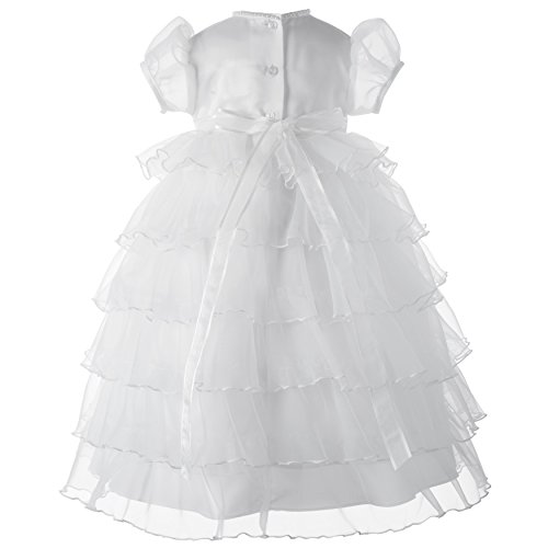 French sheer ribbon across waist is complemented with flower and pearl trim