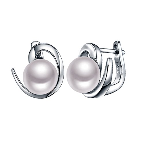 The unique Geometry shaped Earrings with 7.5mm-8mm high luster Freshwater Cultured Pearl,100% 925 Sterling Silver (solid silver) Guarantee