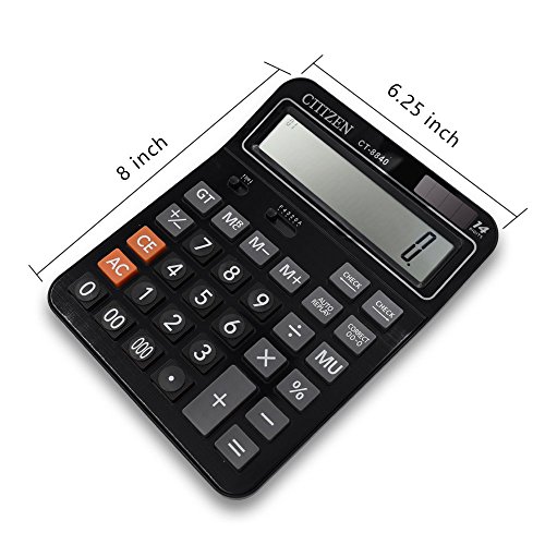 Everplus Black 14D Electronic Desktop Calculator with 14 Digit Large Display, Solar Battery LCD Display Office Calculator