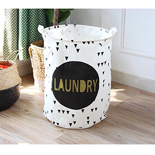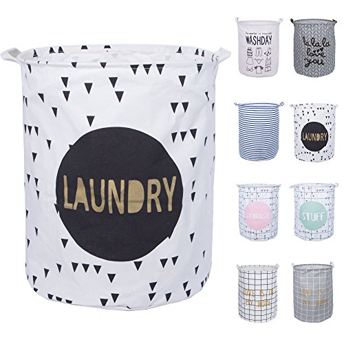 DOKEHOM DKA0818BKL 19.7" Large Waterproof Round Cotton Linen Laundry Storage Basket, Available in 8 Colors (Black, L)