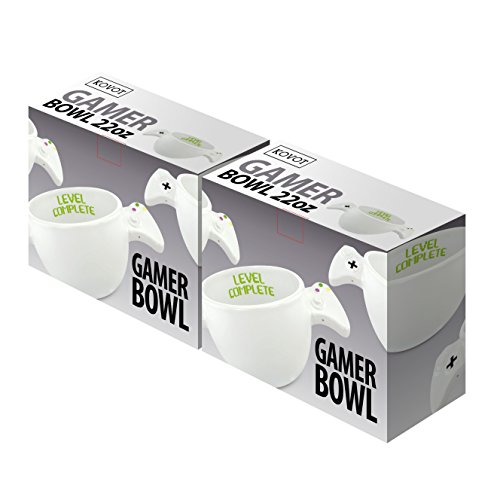 With two handles mimicking a game controller and hand painted buttons, this KOVOT "Level Complete" Gamer Bowl is a must have for any true gamer. "Level Complete" printed on the inside of the bowl. Makes a great gift for any gamer. Bowl holds up to 22oz. Hand wash recommended.Feature