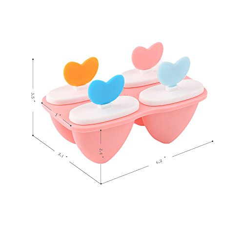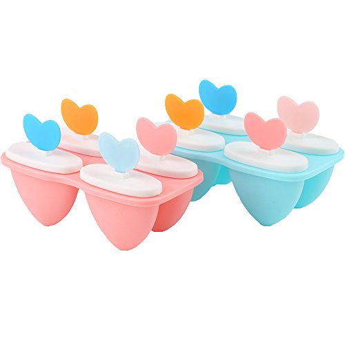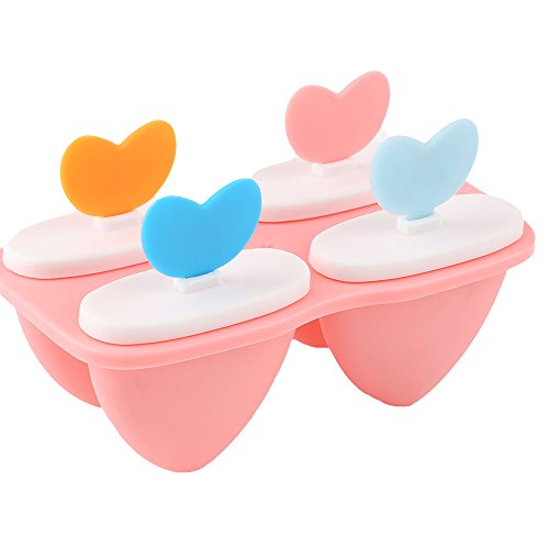 Mirenlife 4 Cavities BPA Free and FDA Approved Popsicle Mold Cute Ice Pop Mold with Lid, Ice Cream Bar Mold Popsicle Mold DIY Ice Cream Maker, Set of 2, Pink and Blue
