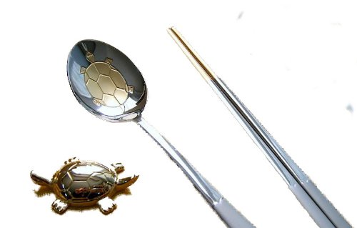 -. Brand : HJin -. Color : Silver -. EAN : 0719926233507 -. Feature : Traditional Korean Metal Tableware. Two sets of spoons, chopsticks, and utensil rests. / Made from high quality stainless steel with 24-kt. gold (99.9%) electroplate. / Elegant and unique turtle design on handles as well on spoon faces. / Made in Korea. Comes in a beautiful box and is a wonderful gift. / Perfect for enjoying your favorite Asian cuisine. -. Label : HJin -. Manufacturer : HJin -. Model : hj-GT2500 -. ProductGroup : Kitchen -. ProductTypeName : KITCHEN -. Publisher : HJin -. Size : 24 Piece -. Studio : HJin -. Title : 24-kt. Gold-plated Korean Spoon and Chopstick Set. Elegant Gold and Silver Design with Turtle Engravings. 2 Sets of Spoons, 2 Sets of Chopsticks, and 2 Utensil Rests. Beautifully-made. Wonderful Gift. -. UPC : 719926233507