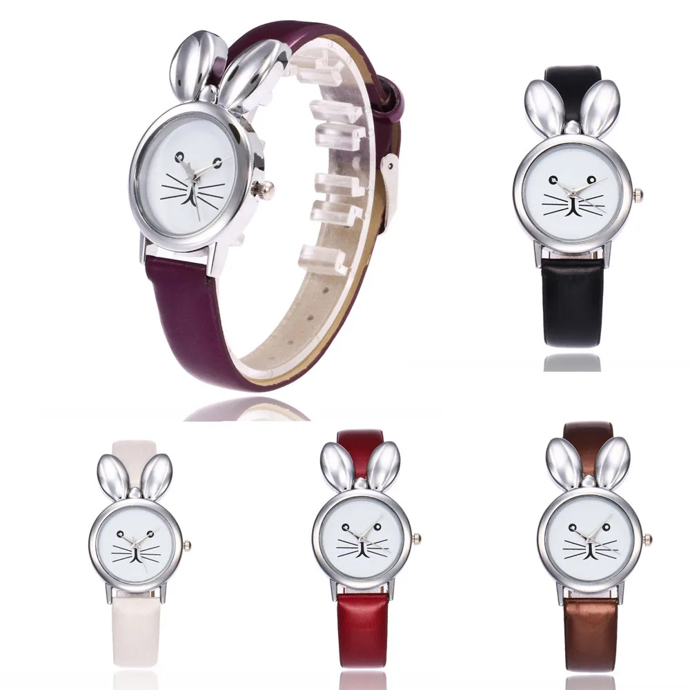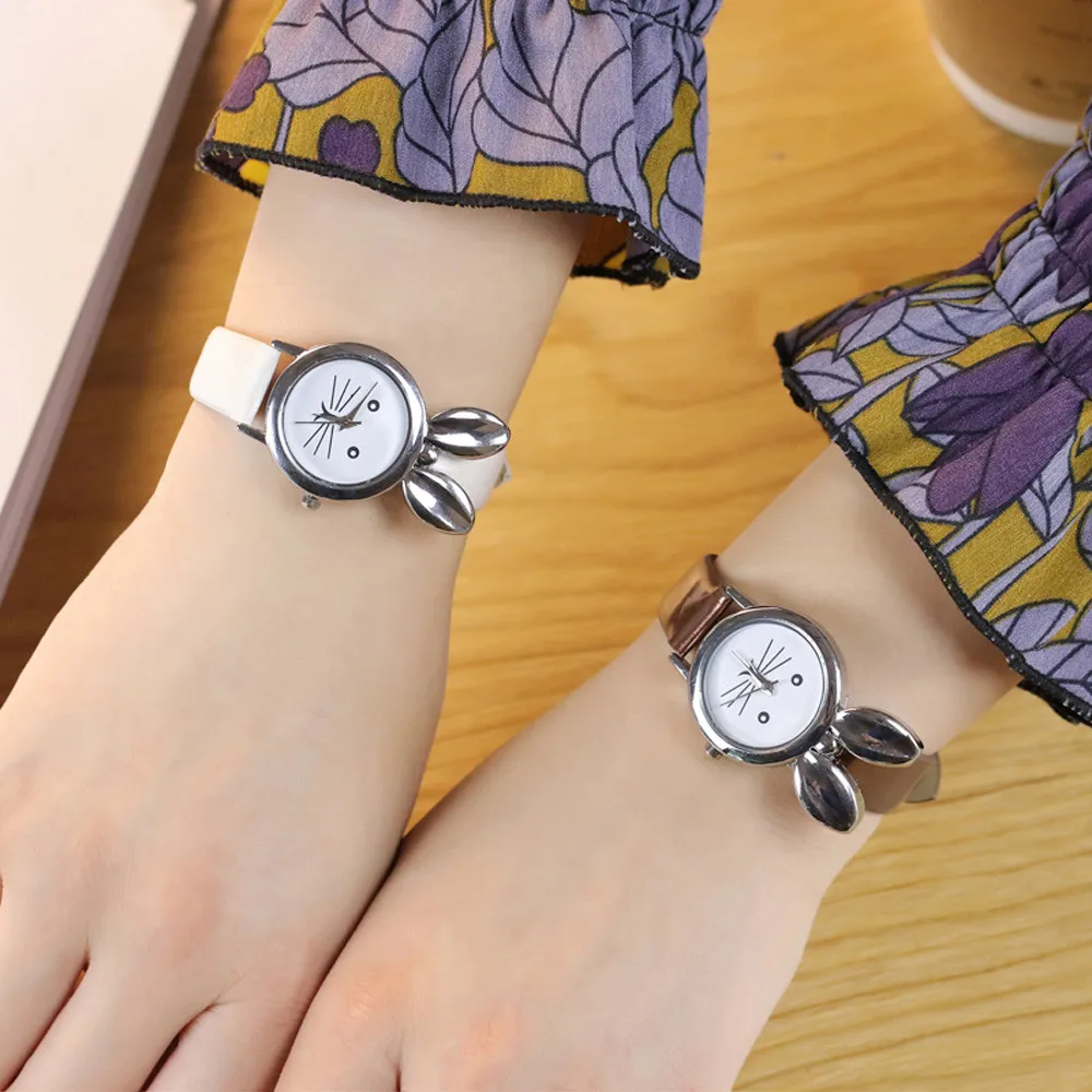 | [해외] 우수한 품질의 여성 팔찌 시계 고양이 인쇄 숙녀 가죽 아날로그 쿼츠 손목 시계 시계 여성 Relojes Mujer |