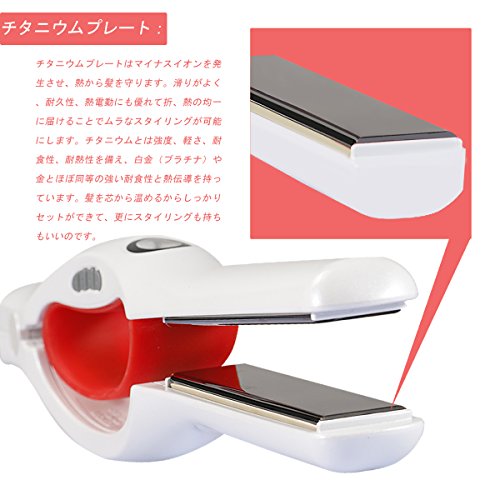 티타늄 플레이트:티타늄 플레이트는 마이너스 이온을 발생시키고, 열로부터 머리를 지킵니다.미끄러짐이 좋고, 내구성,열전동으로도 뛰어나 때,열의 균일하게 신고하는 것으로《무라》인 스타일링이 가능하게 합니다.티타늄이란 강도,가벼움,내식성,내열성을 준비,백금(플라티나(platina))나 금과 거의 동등이 강한 내식성과 열전도 를 가지고 있습니다.머리를 심부터 따뜻하게기 때문에 확실히세트이 생기고, 더욱 더 스타일링도 소유도 좋은거야입니다.