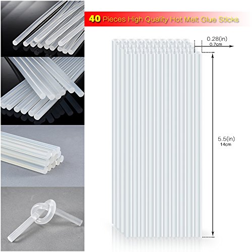 - Included 40pcs 0.27 inch diameter and 5.5 inch length hot melt glue sticks ,and one hot melt glue gun.