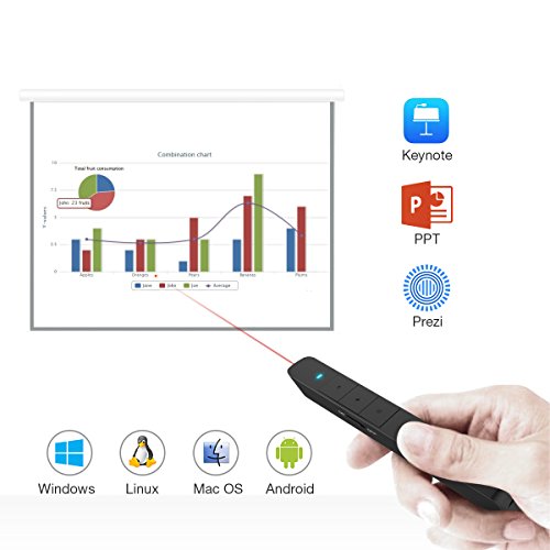 Support hyperlinks. With the red pointer gets the whole room focused on your most important points. It also combines more functions of page up, page down, play slides, black screen for PowerPoint presentation.