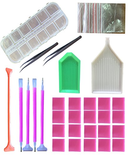 Offtem 49 Pieces DIY Diamond Painting Cross Stitch Tool Kit Set Including Diamond Stitch Pen Tweezers Glue Plastic Tray afor DIY Art Craft