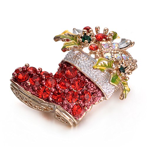 -. Title : Yoursfs Christmas Brooch Pin Clear Crystals Snowflake Deer Red Boots Bell Santa Brooch For Xmas