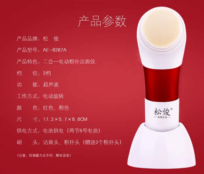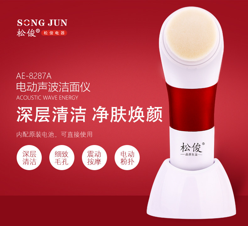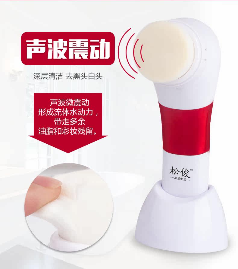 松俊电动洁面仪美容洗脸仪去黑头家用毛孔清洁器软毛刷超声波震动