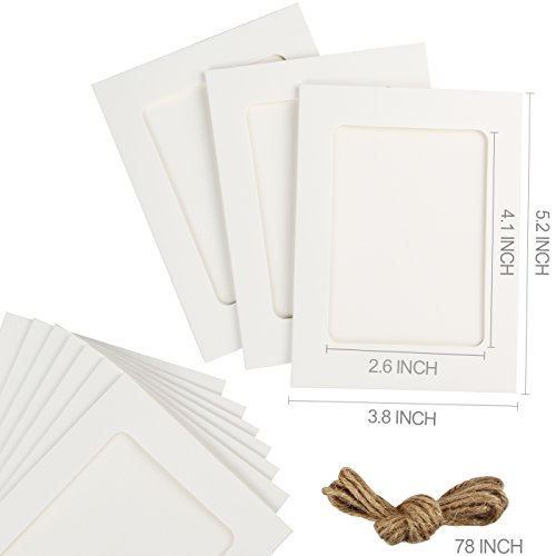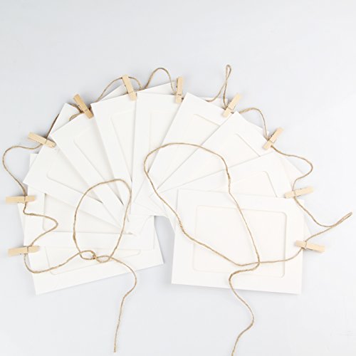 Yilove 3x5 Paper Picture Frames, DIY Cardboard Photo Frame with Clips and String, White