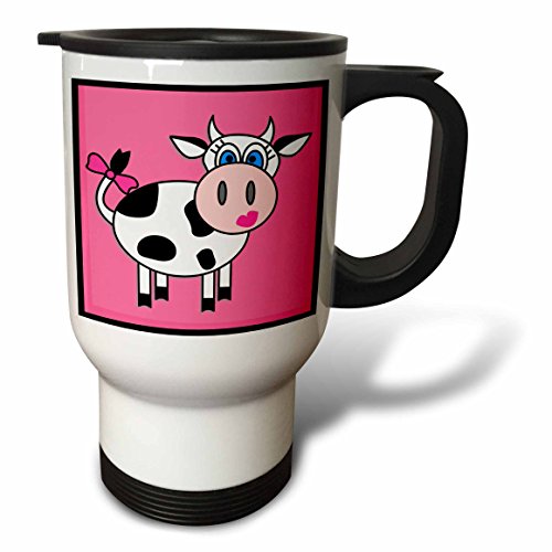 3dRose Happy Cow Girl Travel Mug, 14-Ounce, Stainless Steel