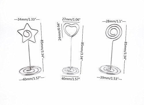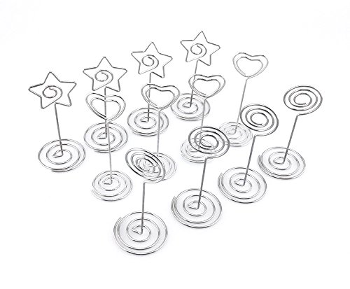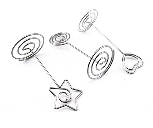 Honbay 12pcs Circle Heart Star Shape Wire Photo Clip Holder Spiral Base Stand Table Card Note Memo Decoration Holder