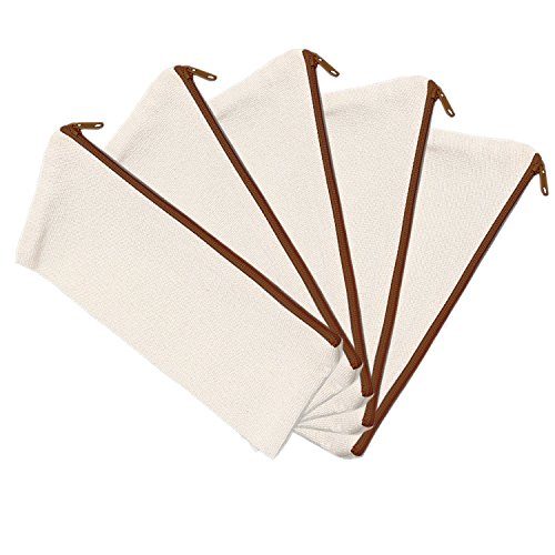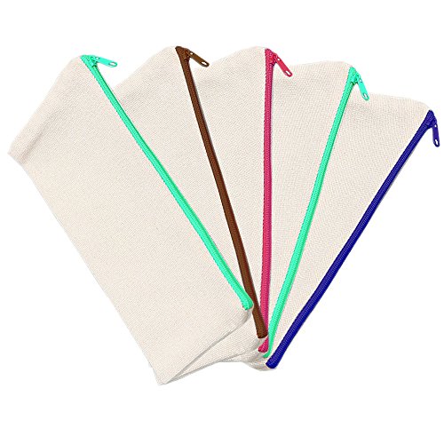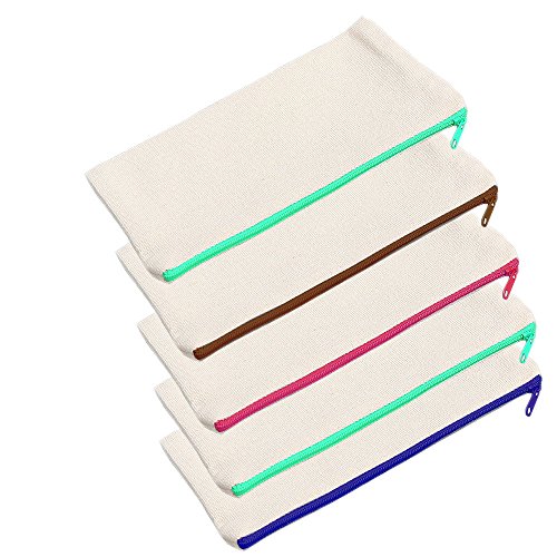D-worthy 5pcs White Color Multi-purpose Canvas Pen Pencil Case Bag Pouch Cosmetic Makeup Bag Holder