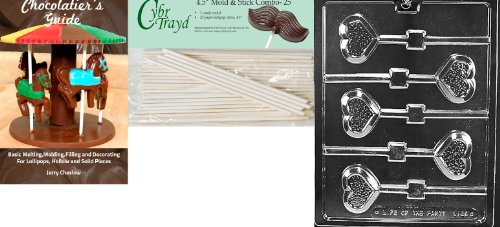 Cybrtrayd 'Small Textured Heart Lolly' Valentine Chocolate Candy Mold with 25 4.5-Inch Lollipop Sticks and Chocolatier's Guide