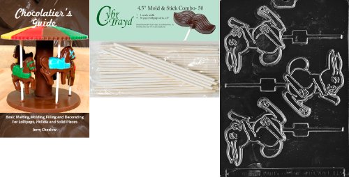 Cybrtrayd 'Large Hopping Bunny Lolly' Easter Chocolate Candy Mold with 50 4.5-Inch Lollipop Sticks and Chocolatier's Guide