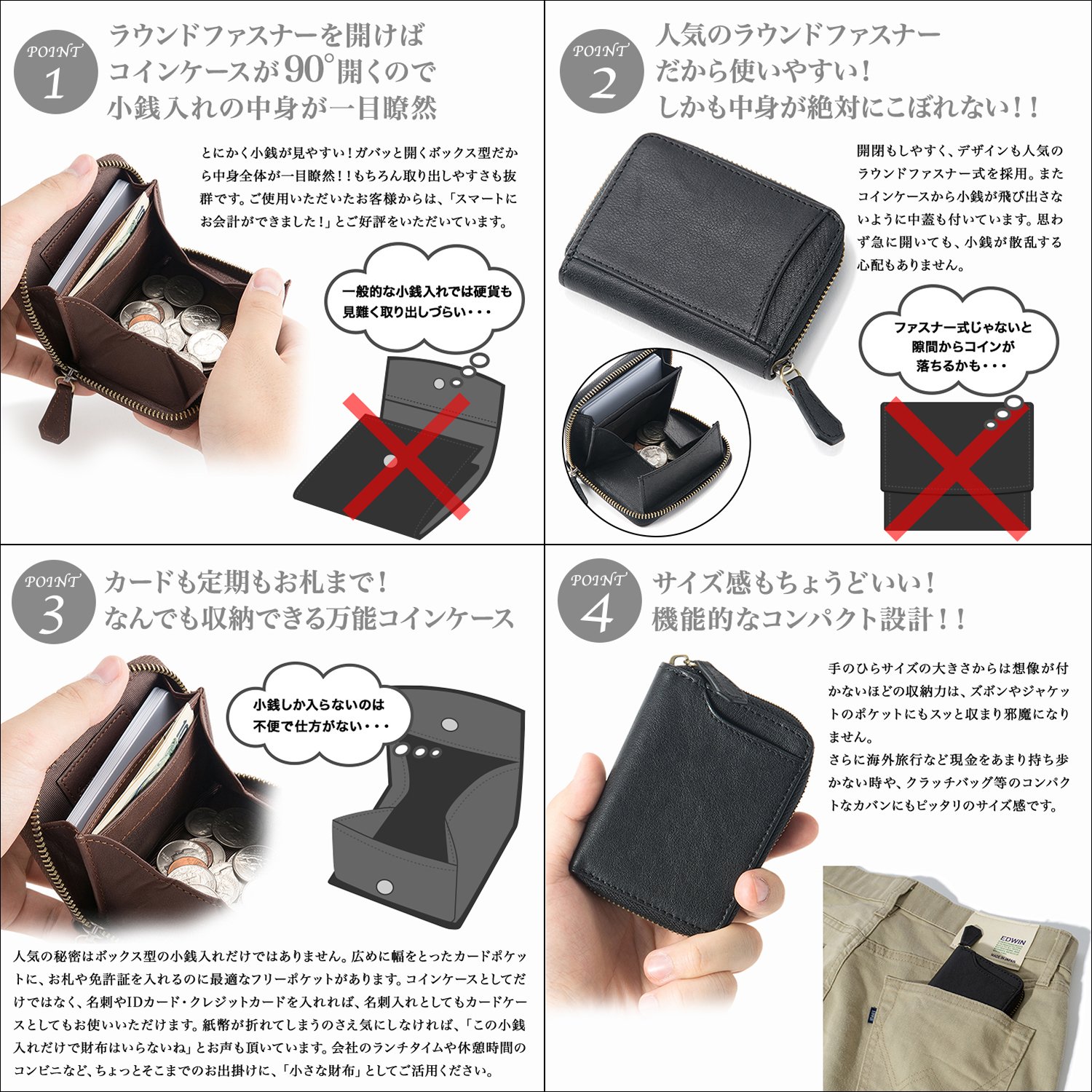 The storage capacity of impossible from the size of the palm size is perfect for compact bags such as clutch bags when not carrying much cash, such as overseas trips, and so on.