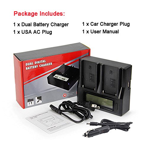 Package Includes: 1 x Dual Battery Charger, 1 x AC Charger, 1 x Car Charger; 1-Year Warranty