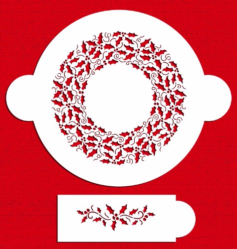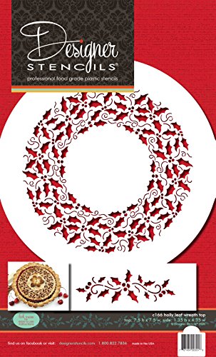 Studio : Designer Stencils Publisher : Designer Stencils Binding : Kitchen Product Description This is a lovely round holly leaf cake top and cake side design that will brighten up any holiday cake. The top round design measures 7.5" in diameter and the side design measures 1.5" H x 4.5" W. The stencil is made of durable 10 mil food grade plastic for high-quality, professional, repeat use. 0