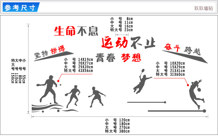 单位公司活动室体育馆学校墙面装饰墙贴运动会所健身房贴纸贴画