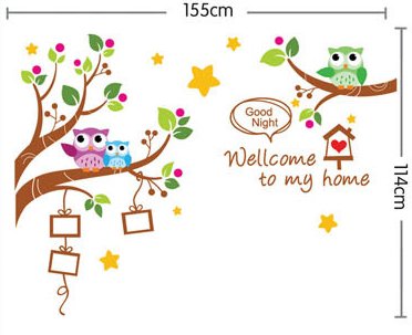 -. Brand : ufengke décor -. Feature : Applies to any clean/dry/flat surface / Easy to apply, remove and reuse without leaving damage or residue / Comes in 1 sheet, sheet size: 60cm x 90cm(23.6" x 35.4") / Recommend finished size: 1.55m(W) x 1.14m(H), it can also be adjusted according to your preference -. Label : Ufingo -. Manufacturer : Ufingo -. Model : UF-WL0894 -. MPN : UF-WL0894 -. PartNumber : UF-WL0894 -. ProductGroup : Home Improvement -. ProductTypeName : BUILDING_MATERIAL -. Publisher : Ufingo -. Studio : Ufingo -. Title : ufengke® Cartoon Owls Tree Branches Wall Decals, Children's Room Nursery Removable Wall Stickers Murals