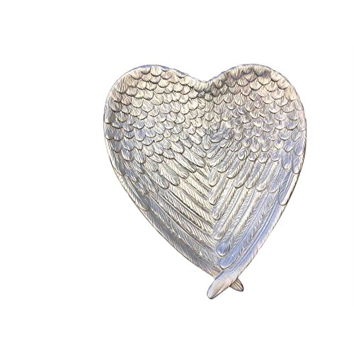 Benzara Winged Styled Beautiful Decorative Resin Heart Shaped Plate, Silver