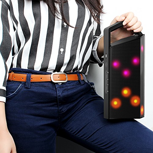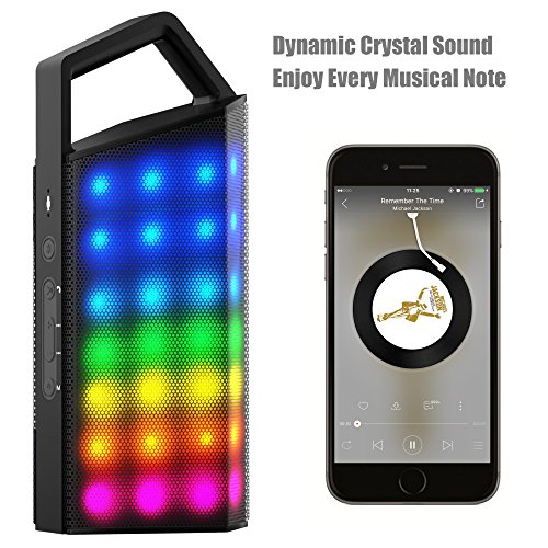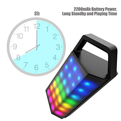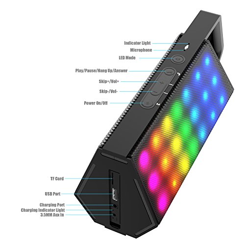 Support 10 meters Bluetooth connection! Support TF card insert! Support 3-6 hours music playing! Support six modes LED changing! *Specification Bluetooth Version: V4.0 BQB Certificate: Yes Max Connection Range: 10M Speaker Power: Φ40mm 4Ω 5W*2 Frequency Range: 50Hz-15 KHz Battery Capacity: Polymer lithium battery, 3.7V/2,200mAh Power Output: 5W*2 Input Sensitive: 600±100mV Package Weight: 43 ounces Package Dimension: 13*5.9*6.3 inches *Package Include 1xBluetooth Speaker 1XPower Adapter 1XManual *Warranty Three months replacement warranty. Please feel free to contact us about your confusion.