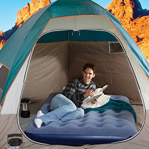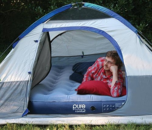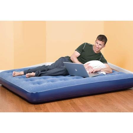 ReleaseDate : 2012-04-06 Studio : Pure Global Brands Inc Publisher : Pure Global Brands Inc Binding : Sports Product Description The ultimate solution for comfort while camping or traveling, our Twin Flocked Top low-profile mattress is durable, waterproof and very portable. Unlike traditional inflatable beds, the coil beam top cushions and supports your body for a better night’s sleep. This bed features a luscious flocked top so you don't even need sheets! If you do use standard size sheets, however, they fit perfectly. Best of all, you’ll be snoozing in no time, thanks to the quick inflation times. Bed Size: 74"x38"x9" 0