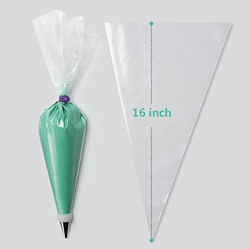 - ♦ CONVENIENT TO USE - These 16-inch disposable pastry bags have a wide opening for easy filling, just trim the bag tip, drop in the desired decorative tip, then fill and dispense.