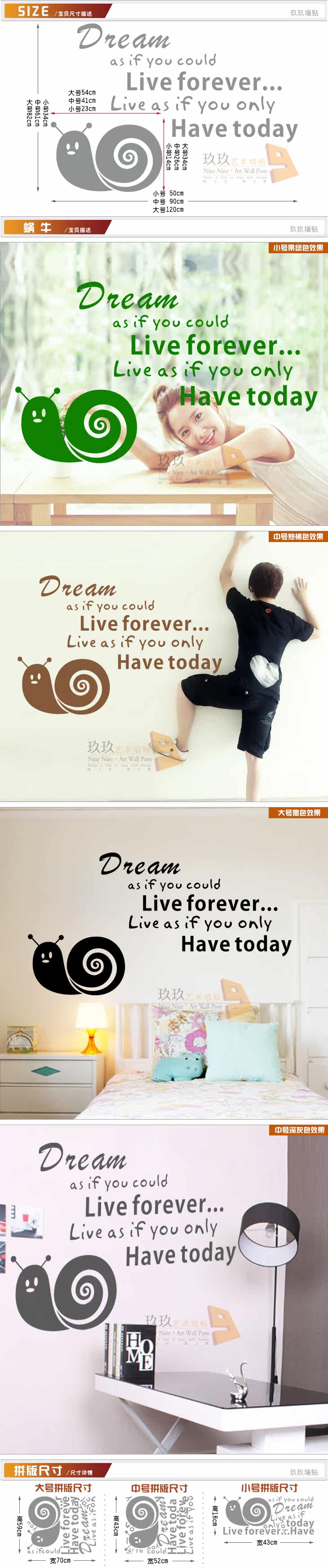 墙贴男女生卧室宿舍男女孩寝室书桌前努力的蜗牛英文励志贴纸
