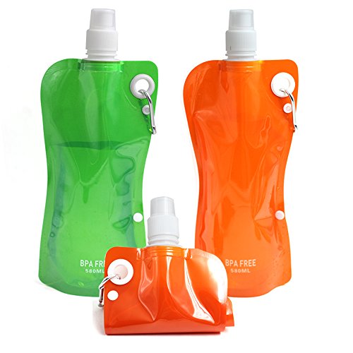 -. Feature : BPA Free with FDA approved polyethylene inner-liner / Rollable and Foldable with metal carabiner for clip-on and storage, Lightweight, Reusable / For Travel, Hiking, Camping, The Gym, Perfect For Both Kids and Adult / Stands upright when filled, Fill Halfway & Freeze To Keep Beverage Cold / 2 pieces with assorted design.