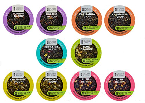 -. Feature : NEW! 10 Cup Higgins & Burke Loose Leaf TEA EcoCups. Recycle your cup! Kaziranga Chai Tea... Lush Berry Herbal Tea + / 10 Single Serve Cups Filled with delicious loose leaf teas, enjoy the following flavors: 10 Single Serve Cups Filled with delicious loose leaf teas, enjoy the following flavors: 1-Bergamia Grey Tea... 2-Chamomint Moon Herbal Tea...2- Kaziranga Chai Tea...2- Lush Berry Herbal Tea... 2-Roaring Black Tea... 1-Tame Dragon Green Tea... / All cups are new and sealed, this is a handpicked sampler, cups are NOT in manufacturers packaging. / Box style and size may vary from what is pictured. / 10 Single serve cups for use in Single Serve cup Brewers