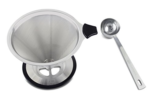 -. Feature : INNOVATIVE AND DURABLE DESIGN: Our ultra fine mesh and coffee pour over stand is designed with 18/8 stainless steel. We've paid close attention in making sure our customers receive a high quality product they deserve. We've also designed our spoon/scooper of the same high grade material. / ACHIEVE AMAZING RESULTS WITH HALF THE COST: To ensure you get professional quality results, we'll provide you with step by step directions by the top baristas in the world. Third Wave Coffee shops charge over four dollars a cup for a pour over coffee cup, and you may wonder why, but it's simply because it's the best possible way to make a cup of coffee. / ECO FRIENDLY: With our stainless steel mesh, we've elimated the use of paper filters. Our Permanent coffee filter not only eliminates paper waste, but it also ensures that all of the nutrients and natural flavor oils from your coffee end up in your cup-not trapped in paper / EASY TO USE AND CLEAN: Not only does this fit directly over most cups, mugs, and thermoses, but it's super easy to clean. After brewing, simply rinse well with warm water or throw it into the dishwasher / LIFETIME WARRANTY: If anything happens to your pour over coffee maker, we will replace it free of charge!