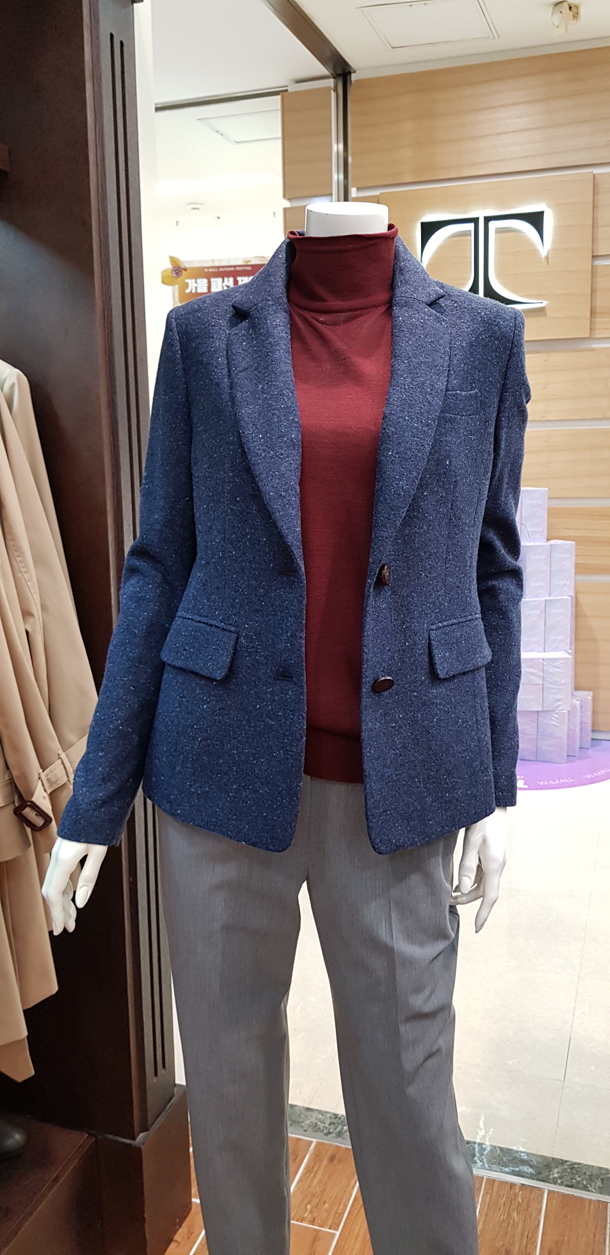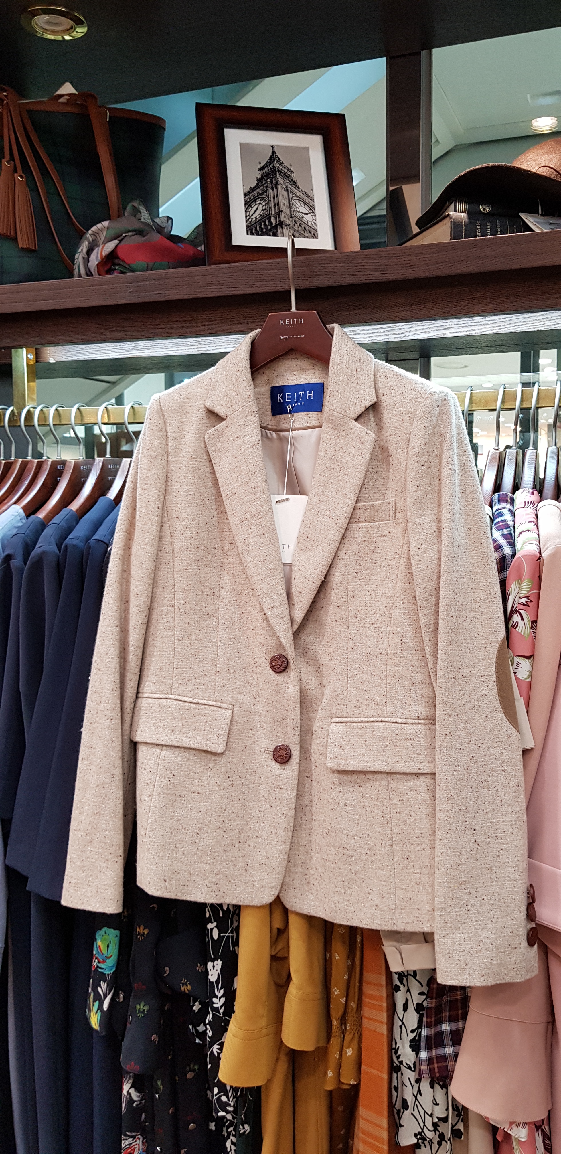키이스~브랜드의 스테디아이템입니다 기본 테일러카라의 얌전하고 베이직함이 있고 스커트나 정장팬츠 또는 캐주얼한 청바지 어디에도 잘 어울리는 재킷입니다 총장59센티입니다