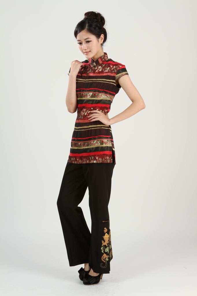 本款面料为进口工艺提花,进口丝棉布料,本面料透气吸湿性极好,成份;棉65%.冰丝35%,斜襟旗袍上衣加长款,手工扣,对花拼做,对手工操作具有较高的手艺要求,本款高贵典雅,极具古典风韶,对那些比较追求时尚.完美的MM应该是最佳选择,穿着舒适透气。家常、晚会、休闲等多种场合都能穿着,既经济又漂亮