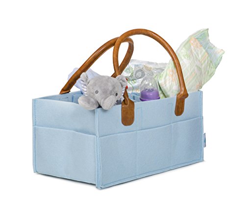 Studio : Hawk Vision Publisher : Hawk Vision Binding : Baby Product Product Description OUR BABY DIAPER CADDY ORGANIZER is just what you need to keep all of your diaper changing needs in one place! Lots of space to store a day's worth of diapers, wipes, baby clothes, toys, medicines, bottles, or snacks. The fashionable light blue matches your baby room, car, baby's outfits, and any modern space. Made of 100% felt leather! The caddy is a perfect 13" x 9" x 7". EXCELLENT BABY SHOWER GIFT will delight any parent. It presents the energy and creativity that should surround every newborn and baby. Plus it makes life much easier. Always have burp rag, extra blanket, entertaining toys, and extra clothes handy and ready at a moment's notice.
