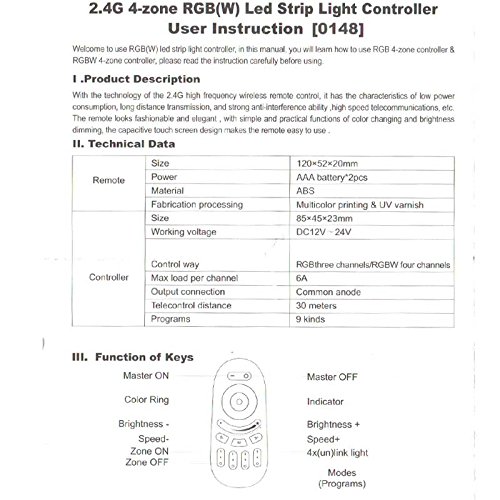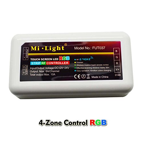 - It can control the led lights up to four different zones, change the color, dim/brighten the lights, Synthetic white , different programs.