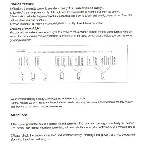 - Supports grouping control, you can add as many controllers as you like and group them as one zone, one remote support up to 4 zones.