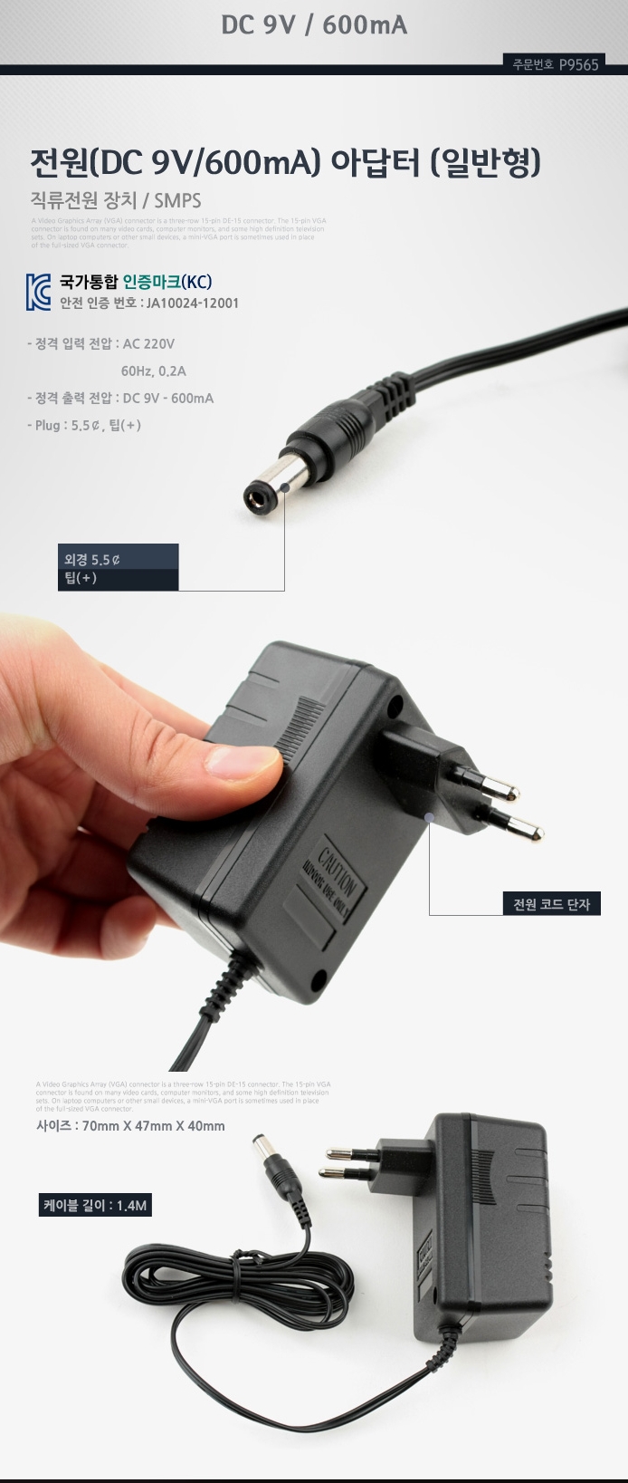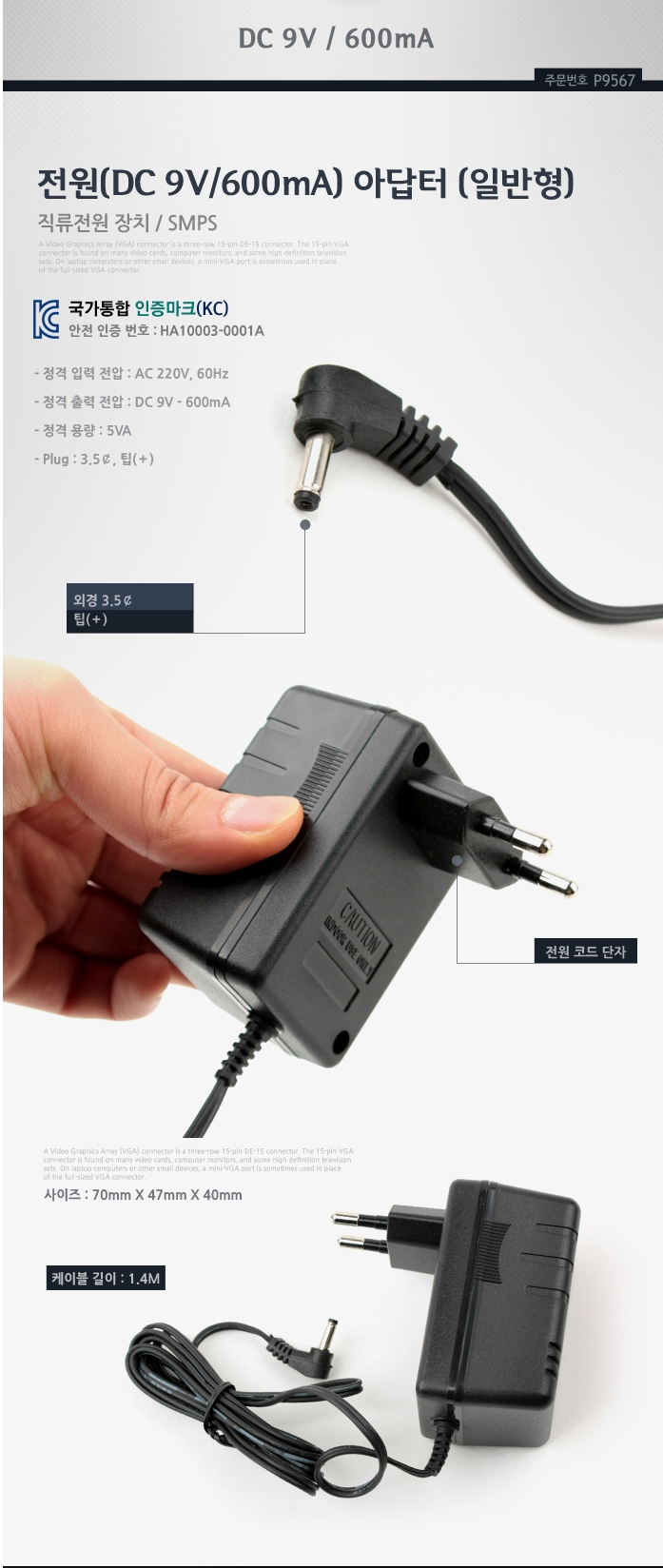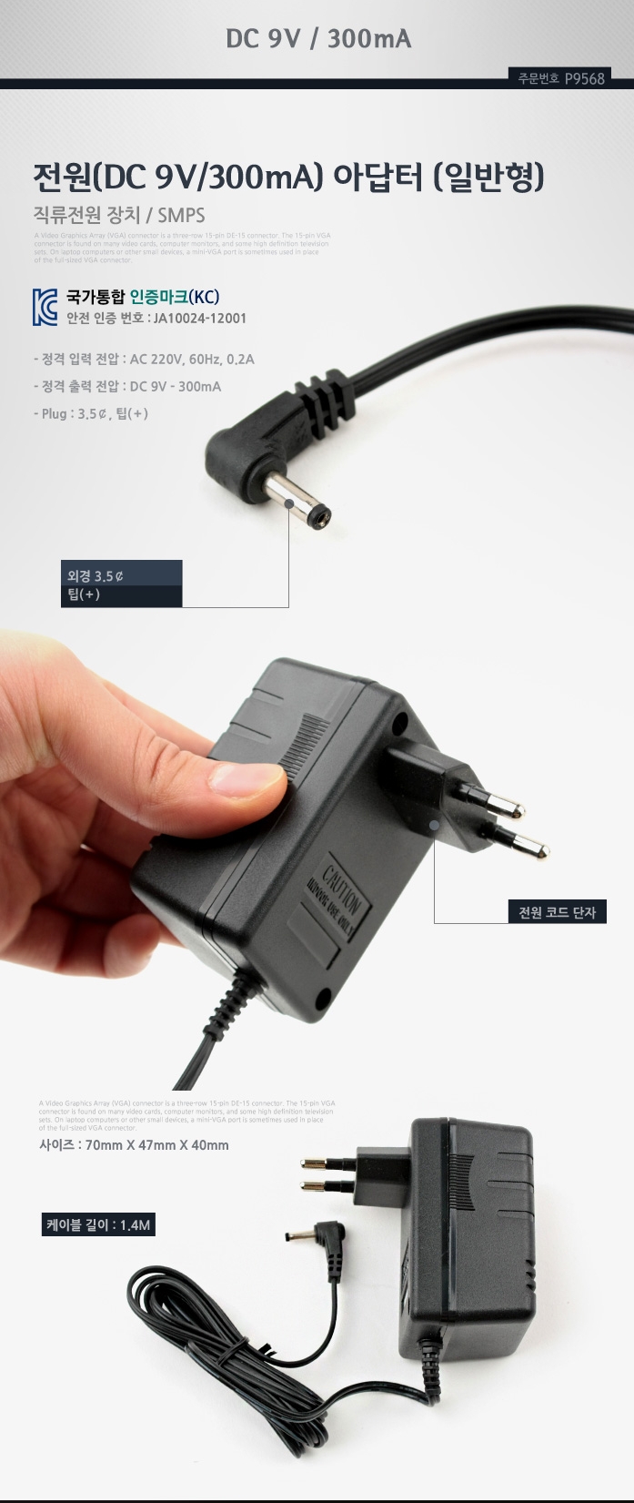 Domestic Standard Power Adapter DC 9V 300mA 3.5 ¢