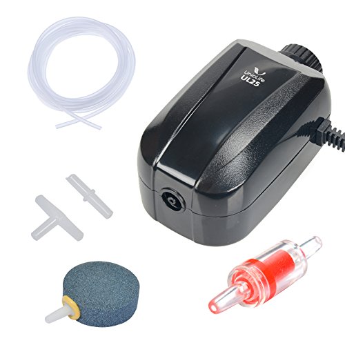 Uniclife Aquarium Adjustable Air Pump Single 2 L/min 2.5 W Fish Tank Oxygen Pump with Air Tube Valve Stone Accessories