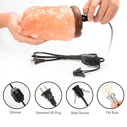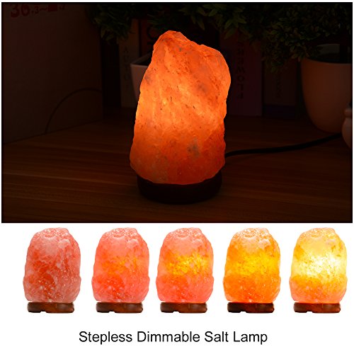 Himalayan Salt Lamp, AKDSteel Natural Salt Rock Lamps Crystal Hand Carved Night Light with Dimmer Switch, Wood Base, Bulb and UL-Listed Cord for Home Bedroom Living Room Christmas Halloween