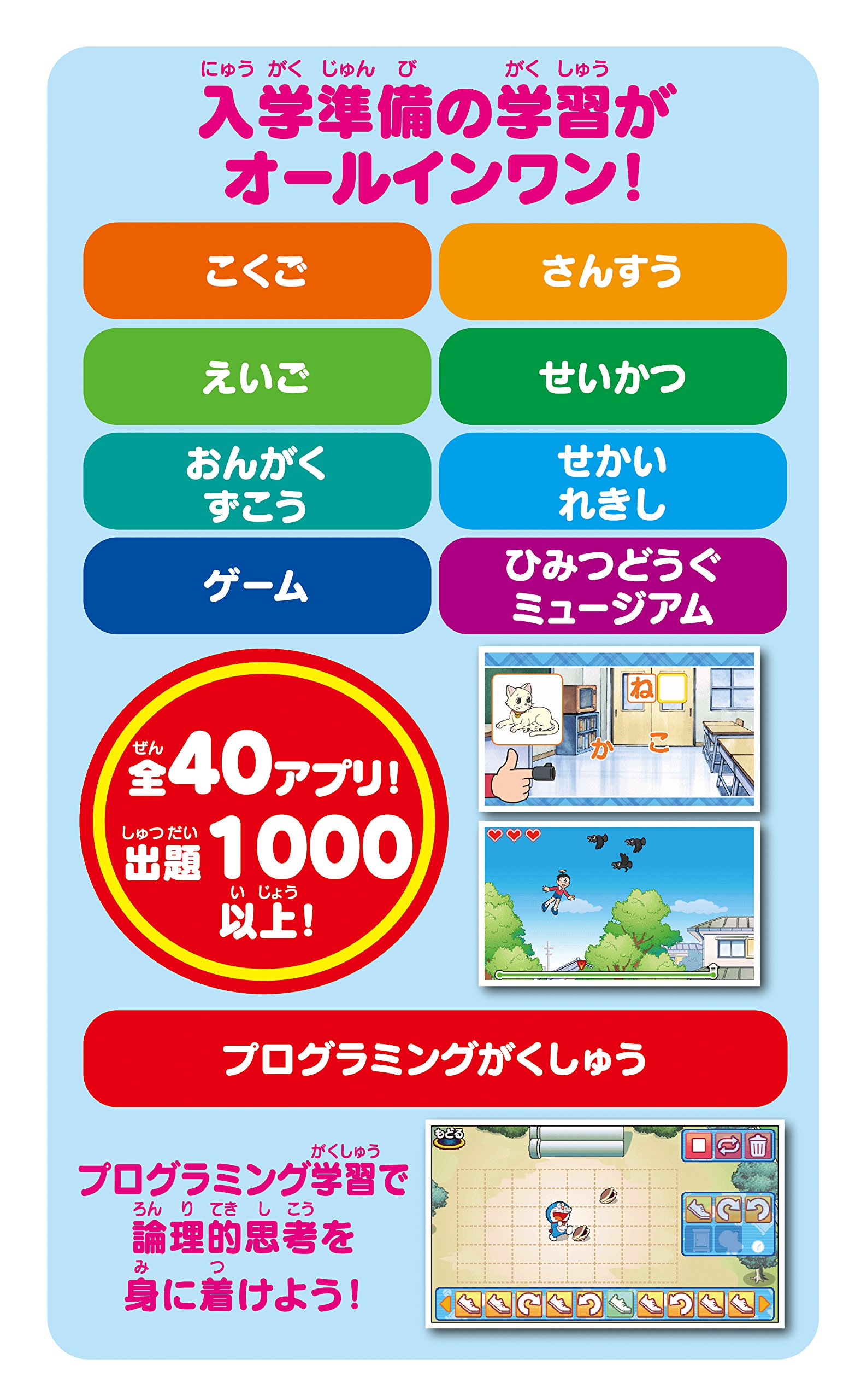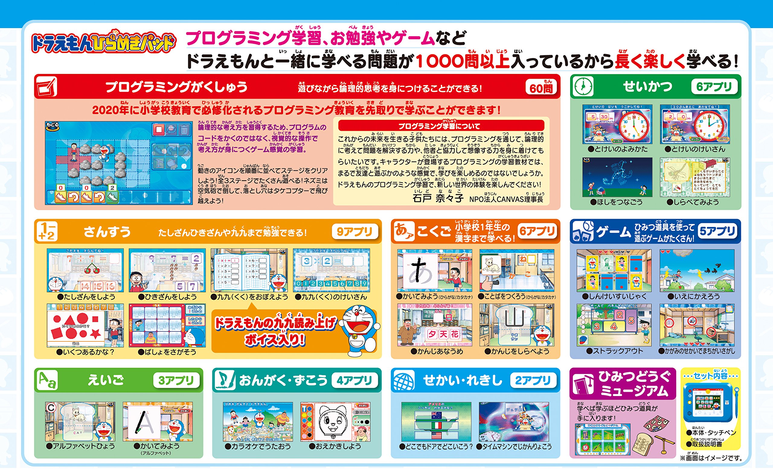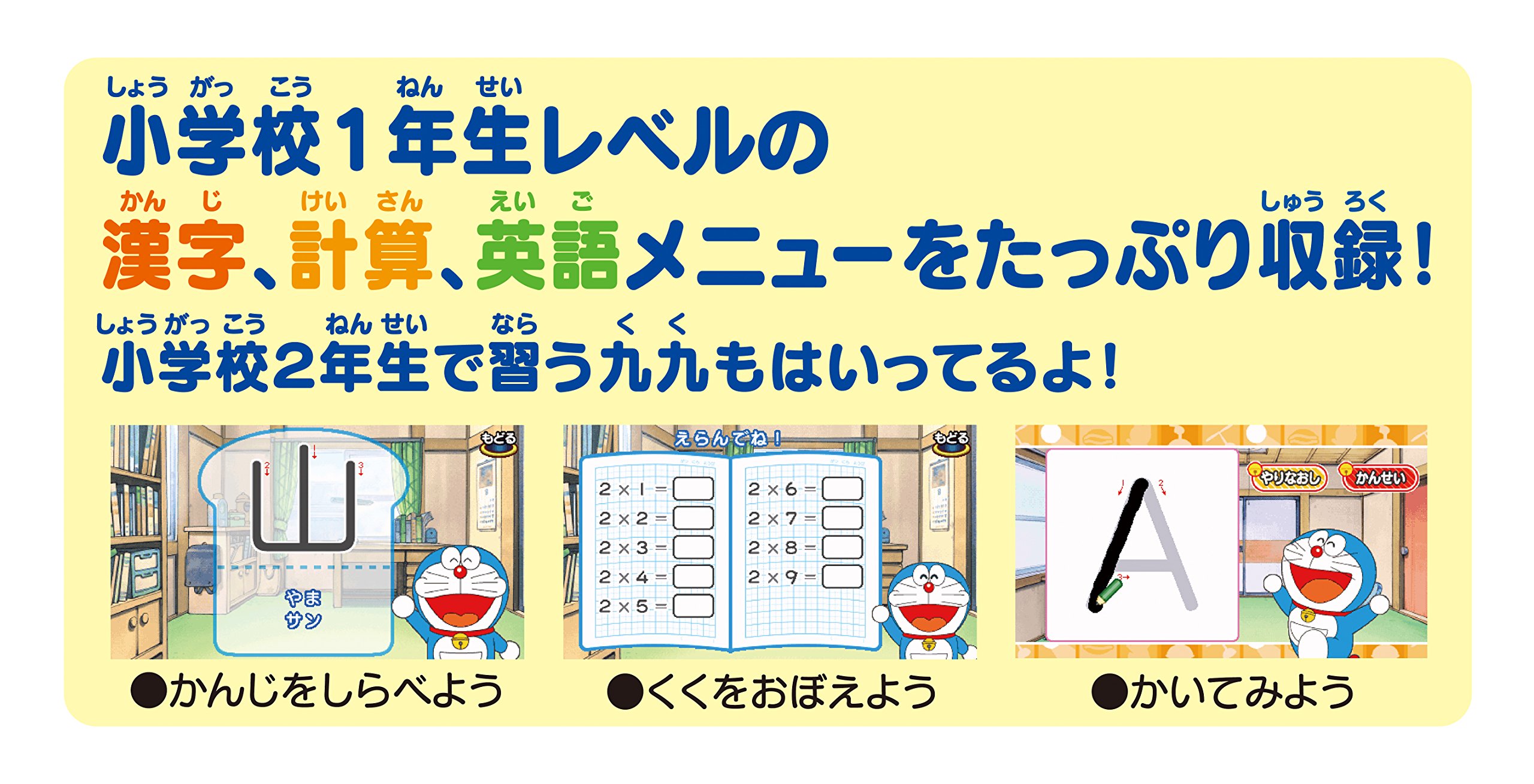 Intellectual training pad which can play happily with the secret tool of Doraemon appeared! Because it is a tablet expression which can intuitively operate, so you can learn right away, you can learn while playing, the lower is crazy even after entering elementary school from 3 years old and can play long