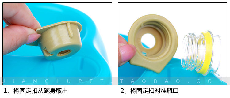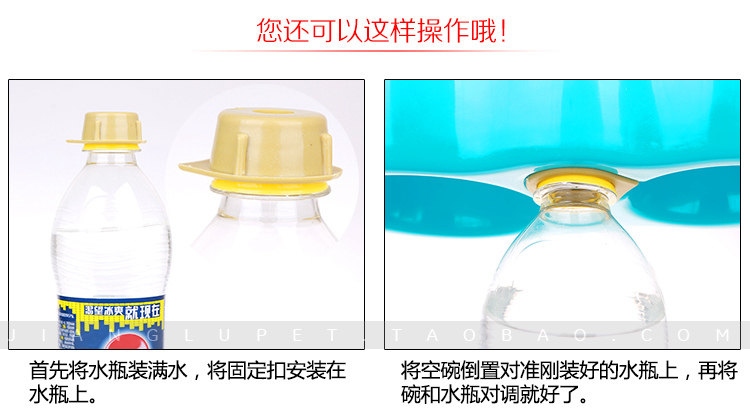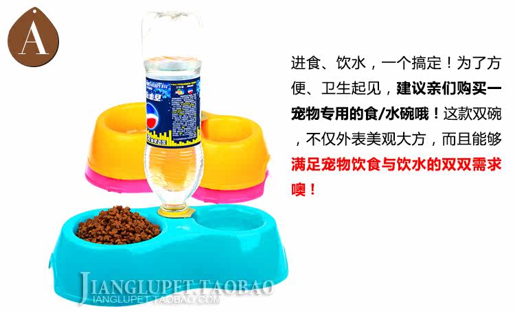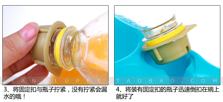 | This kind of food, the basin through scientific design. When the water level is below the bowl, water pressure is greater than the air pressure inside the bottle of water will automatically flow into the water in the basin. When the water level reaches the bowl opening, high pressure is greater than thebottle of water pressure, water does not overflow. Your parents do not have to worry about this problem! |
