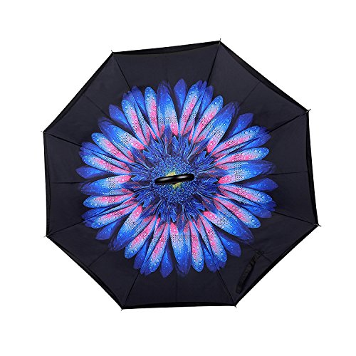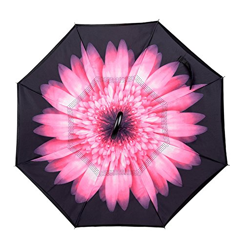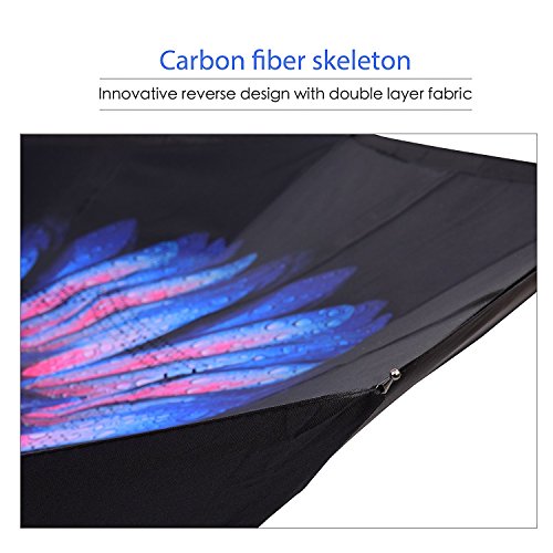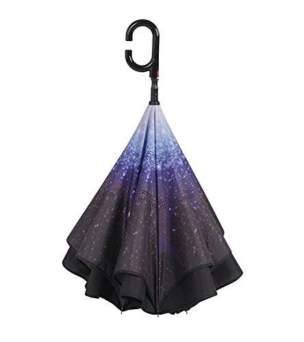-. Feature : AUTO-OPEN REVERSE OUTDOOR UMBRELLA: Please buy Professional umbrellas, as other sellers are selling either Manual Open umbrella or will never ship your item. Our design is the unique Auto-Open Unbreakable frame. Just press a button, and watch the umbrella spring open. No more manual handling and getting wet when entering or exiting your vehicle! / WIND RESISTANT, DURABLE, UV AND RAIN PROTECTIVE CLOTH: Forget about cheaply made stroller and car umbrellas once and for all! This auto-open reverse umbrella is made of heavy duty, thick, windproof, rain and sun protective cloth, keeping you safe and comfortable at all times. / STAY DRY AND KEEP YOUR FLOORS AND CARS SAFE FROM WATER DRIPPING: No more wet clothes and floors for you! This must have wind resistant, folding reverse umbrella is exactly what you need to keep rain water from dripping in your car and all over your floors. What is more, the smooth opening and closing mechanism allows you to enter or exit your car without hassle. / ENJOY FREEDOM OF MOVEMENT AND EFFORTLESS HANDLING: Thanks to the special C shaped ribbed handle design that is larger than normal reverse umbrellas, this travel car umbrella allows you to keep your hands free and perform any task, without worrying about getting drenched in the rain. Hold your baby, carry your shopping bags, talk on the phone and do whatever you like effortlessly.